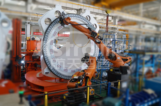 航天智造研制的液壓扳手機器人智能螺栓緊固系統(tǒng),可滿足風電輪轂和風電底座的螺栓裝配的精度和工藝數(shù)據(jù)提取分析,提升生產(chǎn)效率40%以上,解決風機由于螺栓緊固數(shù)據(jù)穩(wěn)定性質(zhì)量百分之百合格全檢數(shù)據(jù)記錄分析,同時可以在訂單負荷大的時候?qū)崿F(xiàn)生產(chǎn)作業(yè)全天候進行,徹底做到了解放人力,提高生產(chǎn)效率,為穩(wěn)定產(chǎn)品質(zhì)量提供了強有力的支撐。